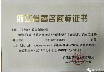 近日,中控MultiF商標(biāo)延續(xù)確認(rèn)為浙江省著名商標(biāo)。并獲得證書(shū)。MultiF商標(biāo)是我公司最主要的產(chǎn)…